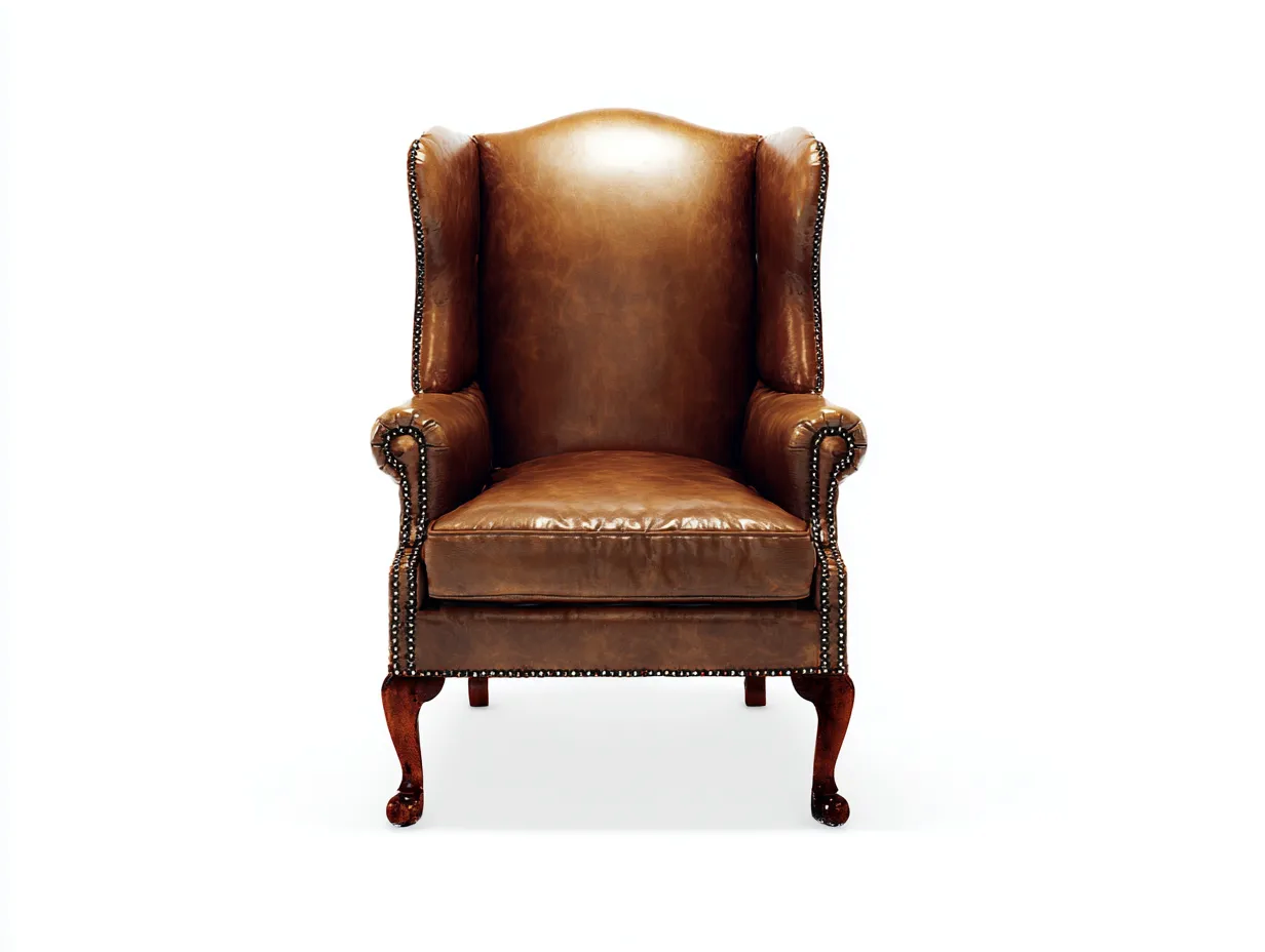 Die hohe Rückenlehne unterstützt Rücken und Schultern und ermöglicht eine entspannte Sitzhaltung. Die charakteristischen Ohrenseiten bieten zusätzlichen Komfort und unterstreichen die traditionelle Form des Sessels. Die gepolsterte Sitzfläche sorgt für angenehmen Sitzkomfort beim Lesen oder Entspannen. Das klassische Lederdesign verleiht dem Möbelstück eine zeitlose Wirkung.