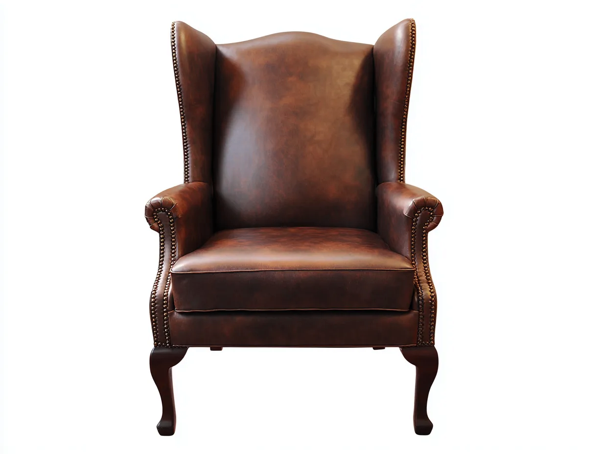 Die hohe Rückenlehne unterstützt Rücken und Schultern und sorgt für eine entspannte Sitzhaltung. Die charakteristischen Ohrenteile verstärken den Komfort und unterstreichen die traditionelle Form des Sessels. Die gepolsterte Sitzfläche bietet angenehmen Sitzkomfort beim Lesen oder Entspannen. Die Kombination aus Lederoberfläche und klassischem Design verleiht dem Möbelstück eine zeitlose Wirkung.